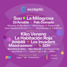 Como su nombre sugiere, Eccleptic se distingue por su camaleónico cartel, dentro de una línea general de música independiente. Del 15 al 17 de mayo reunirá en Vinaròs la juventud de Suu, La Milagrosa o Los Invaders junto al histórico legado de Kiko Veneno y La Habitación Roja. Lo mismo ocurre con los djs, combinando a Innmir con Amable. Habrá un apartado para grupos CS (Palo Domado, Phanktom48) y el complemento de las artes plásticas, a cargo de Maribel Redó.