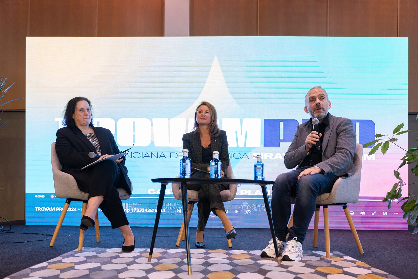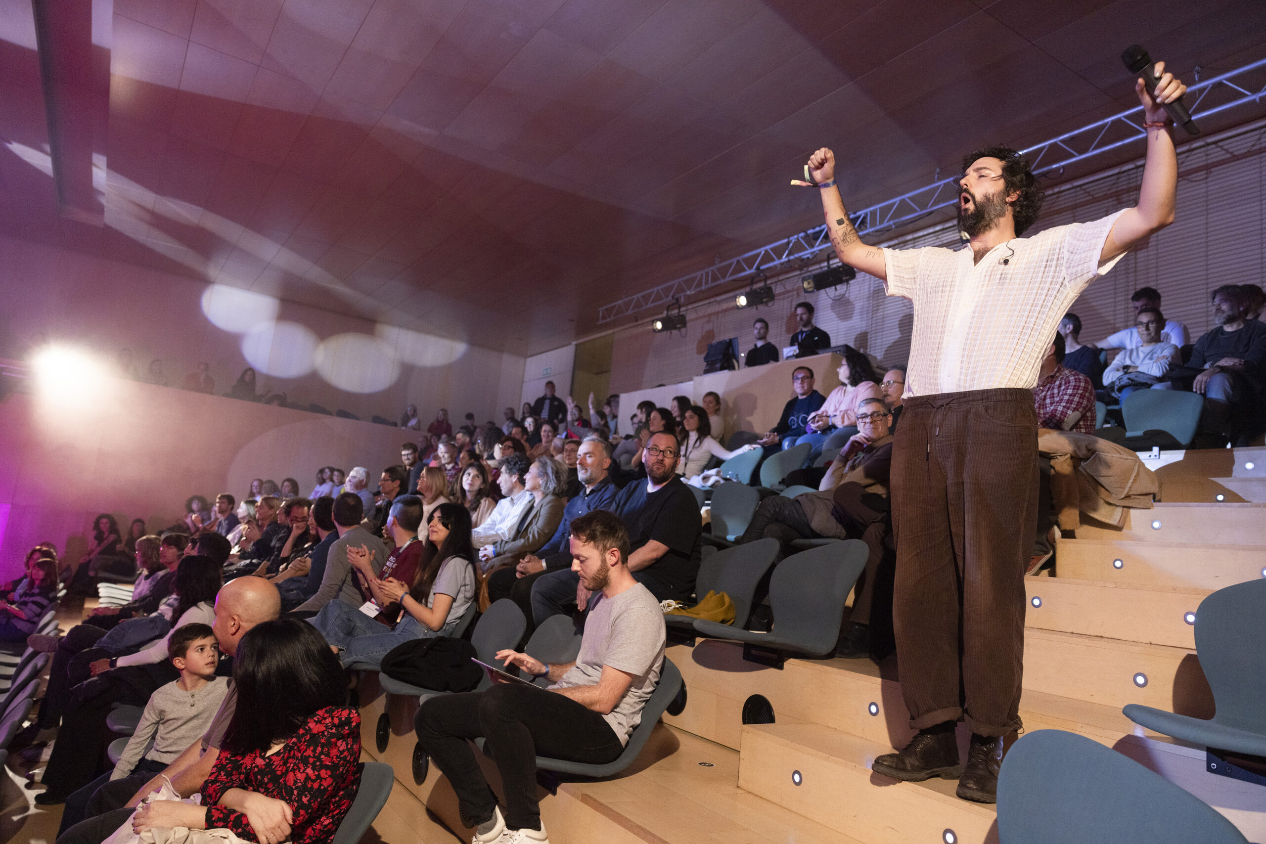 MC Alberto (de pie) y Sergio Esteve, durante la presentación del libro en el Auditorio Juan Varea de Burriana. Foto: Josep Samaruc Falcata.