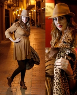 Nos hemos encontrado a Ana atareadísima preparando la Fashion Night Out, que se celebrará en los comercios de moda del centro de Castellón mañana, viernes 2 de diciembre, desde las 21.00 y hasta la medianoche. Ana luce embarazo con un vestido de ante color camel de Traffic People de Pecata Minuta y lo combina con los tonos marrón y beige del abrigo con estampado de leopardo de Jason Wu que compró en una escapada a Madrid. El sombrero de estilo borsalino es un regalo de su amiga Ana Estela y le da un contrapunto masculino a un estilismo muy femenino. Los botines son de Hazel y los leotardos de Calzedonia. El detalle de las uñas verde safari es una de las novedades de la temporada. Ana ha comprado el esmalte en H&M. Podéis seguirla en su blog de moda.