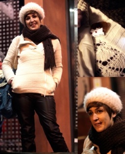Una tendencia que crece cada día con más fuerza, no sólo como moda, sino también como actitud ante el consumo desaforado, como única salida para diferenciarse del vecino y desmarcarse de las grandes franquicias mundiales. De todos modos, como no solo de vintage vive el hombre y la mujer, Bea lleva un pantalón imitación de cuero negro de Blanco, que contrasta con la lana en tonos crudos, una bufanda de Zara y los botines son de Doble A.