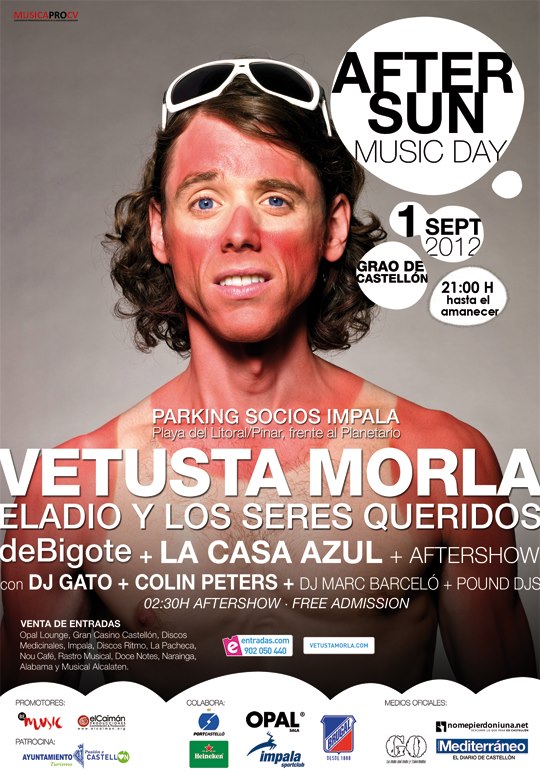 Vetusta Morla y La Casa Azul. Emocionarse y bailar. Cerca del mar y con esa atmósfera reconfortantemente nostálgica que siempre trae consigo el mes de septiembre. Para tonificar los oídos tras el maratón de festivales que se han celebrado en La Plana este verano. La cita se llama After Sun Music Day: el sábado 1 de septiembre a partir de las 21.00 en la Sala Opal en el Grao de Castellón, con un cartel que completan Eladio y Los Seres Queridos, deBigote, dj Gato y TV No, Colin Peters, Marc Barceló y Pound dj. Un buen plan al que Nomepierdoniuna se ha querido sumar como medio oficial con la intención de ponérselo fácil a nuestros seguidores a través de una promoción de cinco entradas individuales. Para participar en el sorteo solamente tienes que enviar un e-mail a nomepierdonimedia(arroba)gmail.com con la respuesta a la pregunta ¿Qué ciudad da título a una de las canciones más conocidas de Vetusta Morla? poniendo “Promo After Sun Music Day” en el asunto. En el e-mail has de indicar también tu nombre completo y un teléfono de contacto. La promoción estará abierta hasta el jueves 30 a las 10.00 y antes de las 14.00 de ese mismo día se darán a conocer l@s ganador@s. Si no hay suerte, las entradas cuestan 25 euros y las puedes pillar en Entradas.com, Ticketmaster, Opal Lounge, Impala, La Pacheca, Medicinales, Ritmo, Nou Café, Rastro Musical, 12 Notes, Naraniga, Alabama y Musical L’Alcalatén.