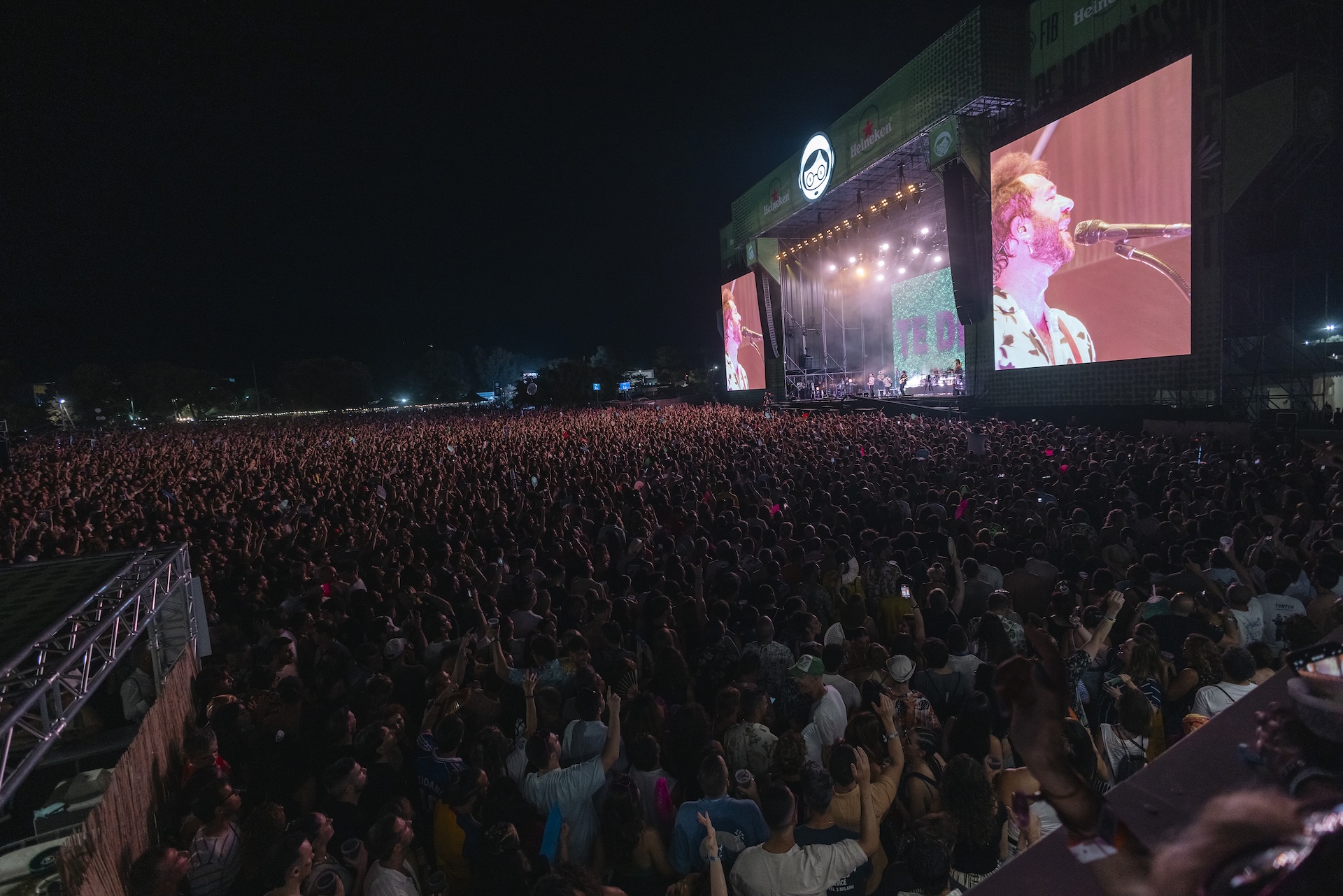“Los hermanos Morán llevaron este festival hasta 2009; en aquel año el FIB cambió y entraron una serie de inversores. Hemos tomado la opción de estar aquí arriba en el escenario, porque es nuestro trabajo, nos dedicamos a hacer canciones y conciertos, pero quien piense que estamos a favor de cualquier tipo de violencia y, sobre todo, con el genocidio que se está realizando sobre el pueblo palestino, está muy equivocado con la ideología de este grupo. Imagino que cada cual se posicionará a su manera estos días en el festival. Nosotros lo mejor que podemos hacer es crear un poco de conciencia y que disfrutéis de nuestro concierto y que dediquéis esta canción, cantando a pleno pulmón por la gente que está sufriendo en Palestina”
