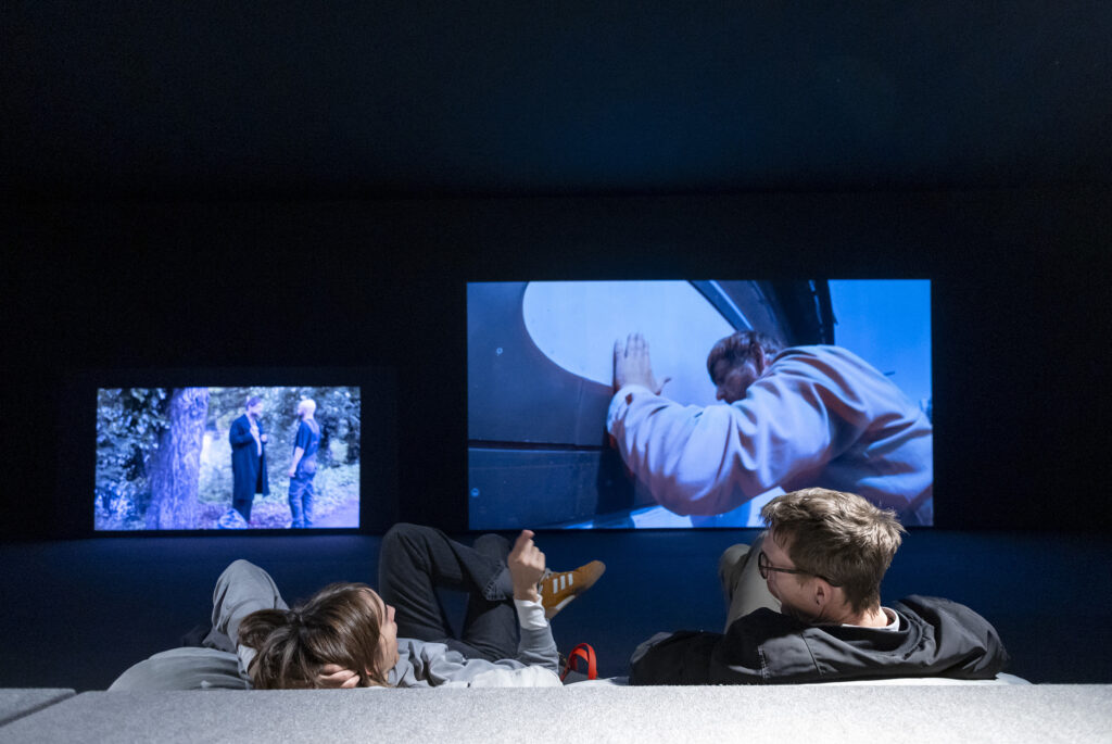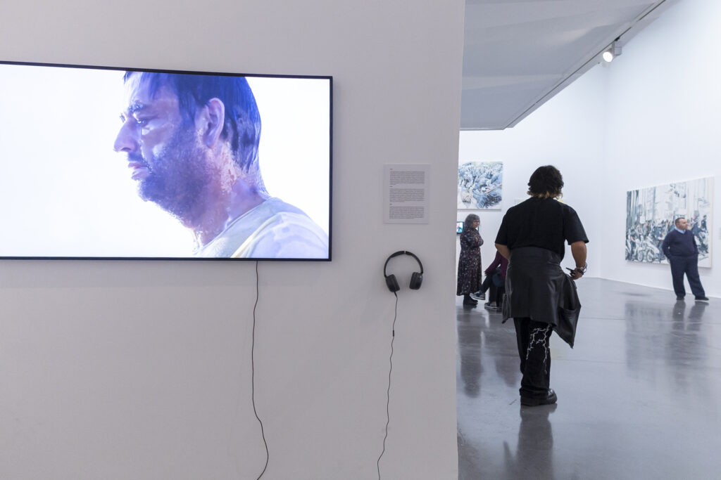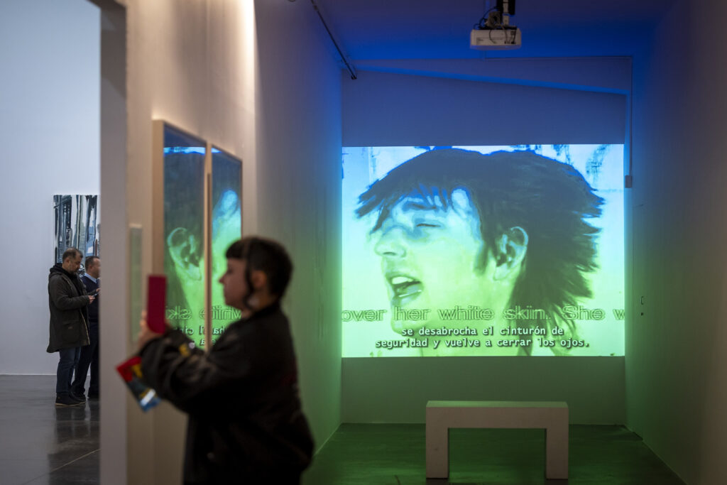 La instalación se despliega en dos pantallas: una sigue la narrativa principal, marcada por un ritmo acelerado y fragmentado, mientras que la segunda -inédita en esta versión de la exposición- muestra una secuencia más íntima de la performance, en la que el artista aparece bailando junto a otro intérprete. El resultado es una pieza que condensa muchas de las obsesiones de su trabajo y que adopta una velocidad visual cercana a la manera en que hoy consumimos imágenes.