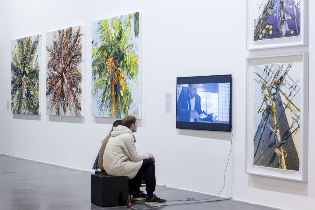 En la serie Palm Bombs, vinculada a su paso por Sri Lanka, las palmeras aparecen como imágenes exuberantes y seductoras que esconden al mismo tiempo una amenaza latente: los cocos (o bombas) pueden caer en cualquier momento. Como explica la comisaria Yara Sonseca, esa tensión entre belleza y peligro atraviesa estas obras y refleja también el contexto político que vivía el país durante la estancia del artista.