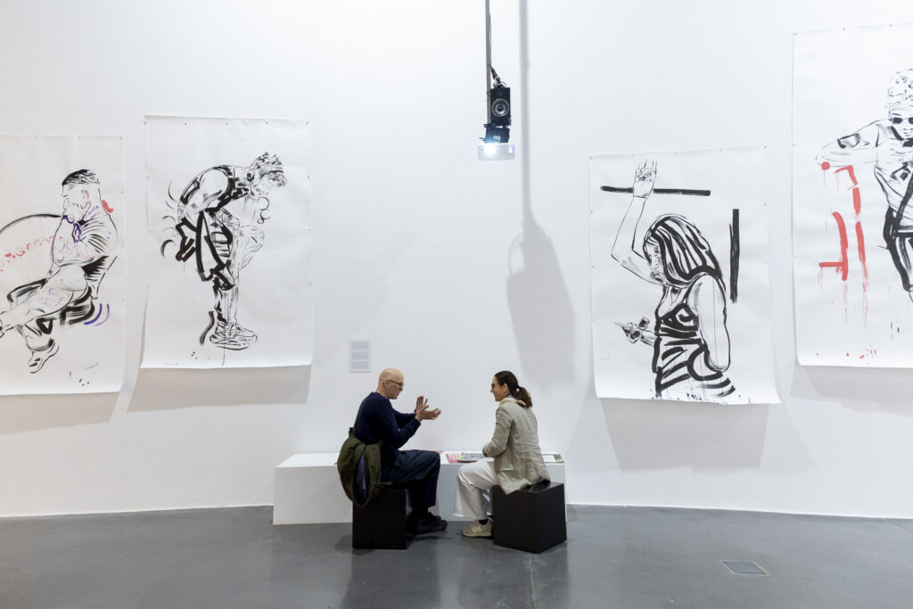 Obras en tinta sobre papel dentro de la propuesta multidisciplinar de Erik Schmidt. Foto: Carme Ripollès.