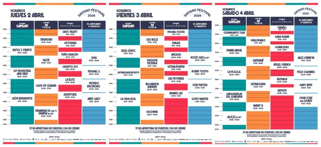 Horarios de los conciertos del SanSan 2026.