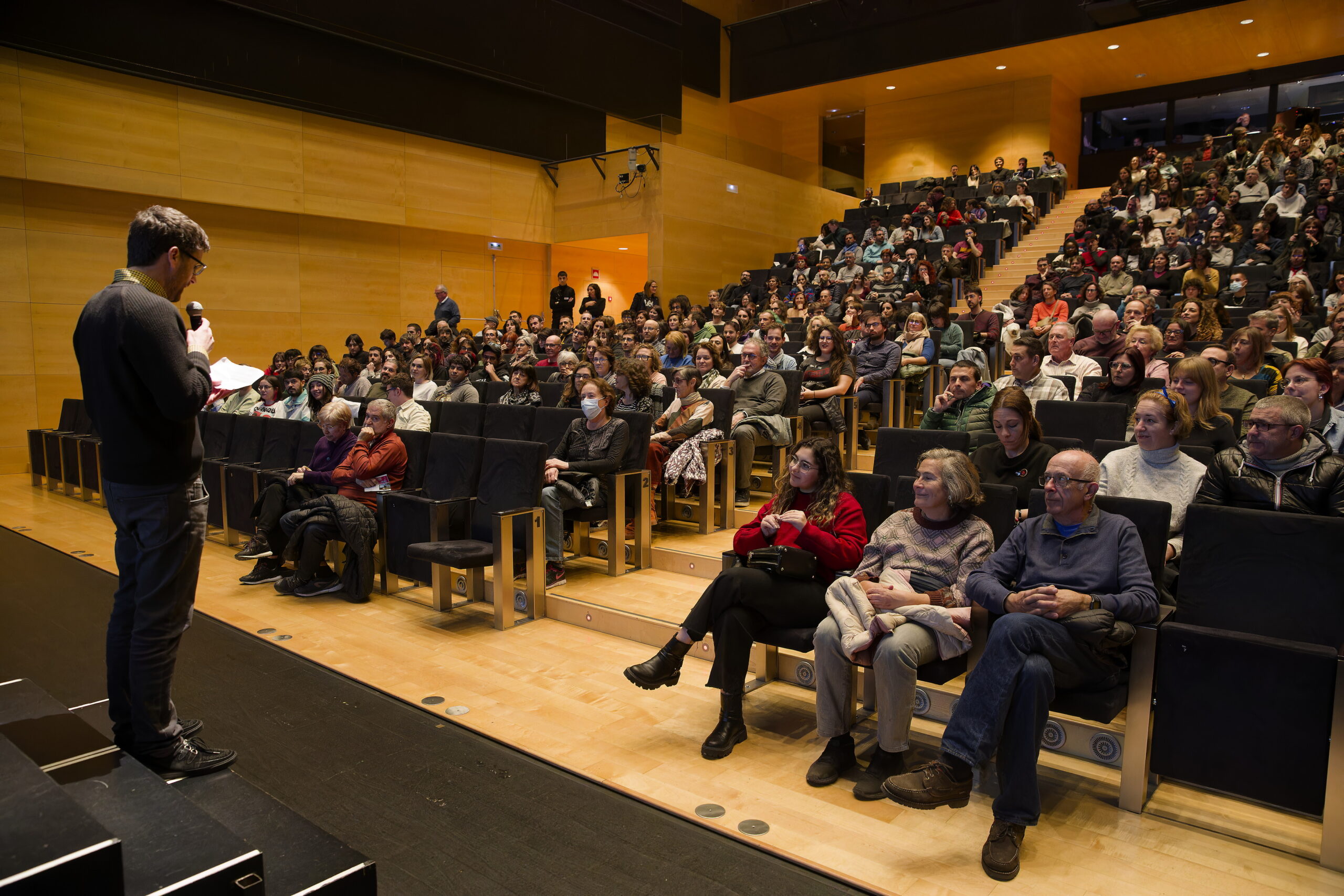 Sergio Ibáñez, miembro de la organización de CinemaScore, se dirige al público que llenó la mayoría de asientos de la sala principal del Paranimf. Foto: Antonio Pradas.