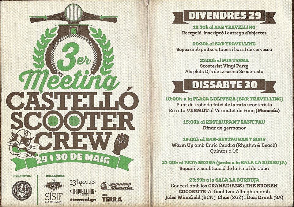 programa castelló scooter Publicado el 30/05/2015 a 960 × 678 en Los Granadians y The Broken Coconuts se suben a la moto del tercer Castelló Scooter Crew Meeting