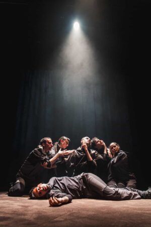 La idea de Ultimatum fue de Jon López y Martxel Rodríguez, fundadores y directores de la compañía surgida en 2016 en la localidad de Lesaka (Navarra) y también bailarines en esta producción, al lado de Katalin Arana, Laura Lliteras, Edoardo Ramirez y Marcos Martincano. Su elástica fisicidad llevada al extremo sobre el escenario recuerda los movimientos ideados por el coreógrafo Marcos Morau, una coincidencia congruente, puesto que en la ficha técnica aparece el nombre del creador de Ontinyent (Valencia) como asesor artístico. Y no tiene nada de casual esa coincidencia, puesto que ambos colaboran de manera frecuente con la compañía La Veronal.